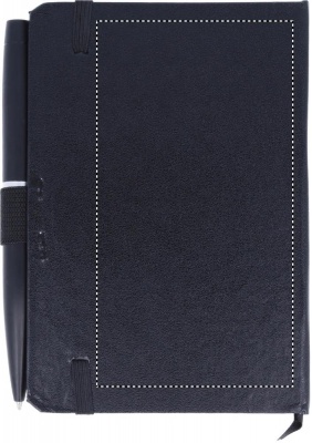 DIN A6 Notizbuch mit Hard Cover aus PU und 72 Blatt (144 Seiten) liniertem Papier. Elastisches Verschlussband und Lesebändchen. Mit passendem Druckkugelschreiber aus Metall. Blaue Tinte.