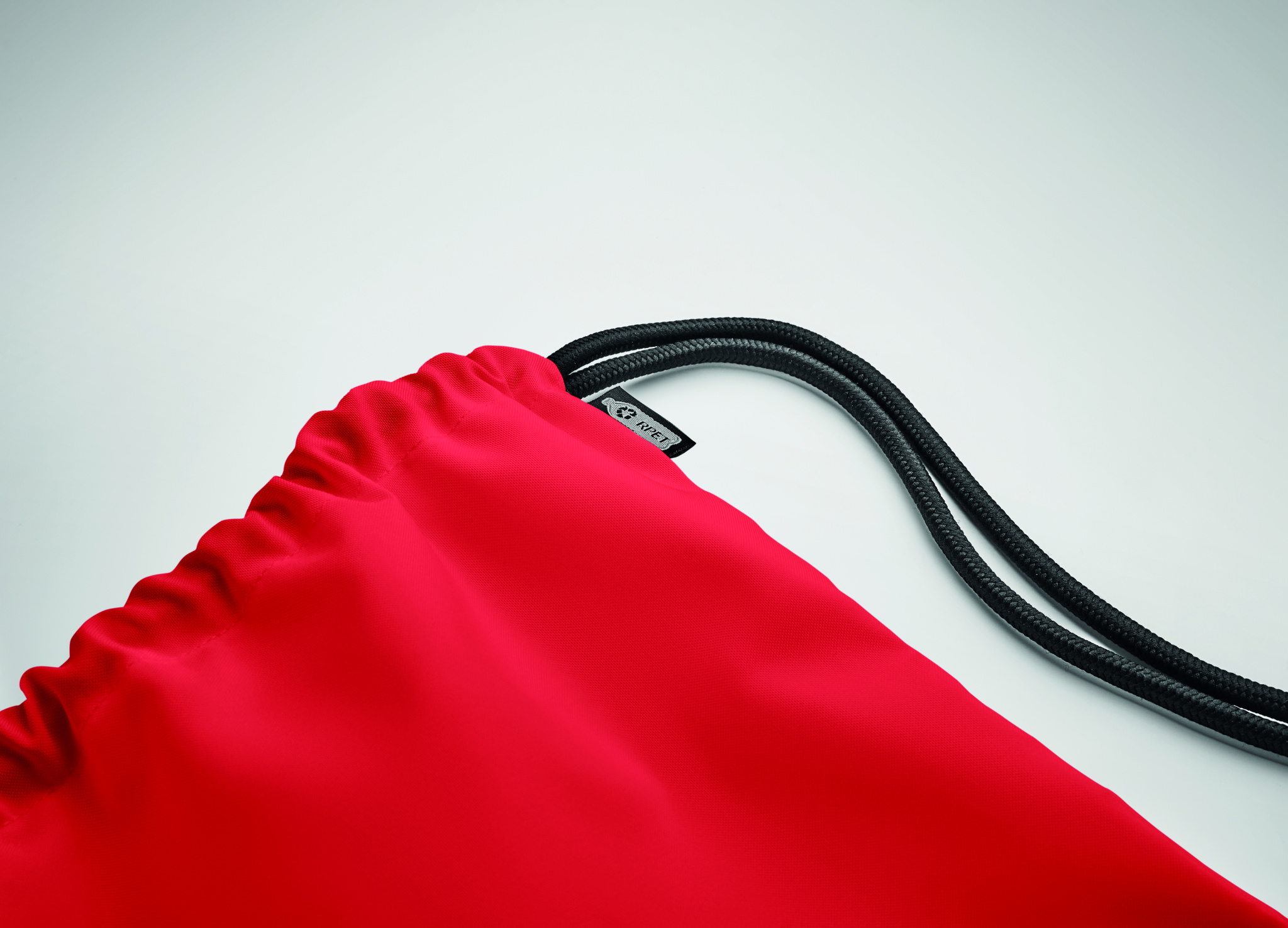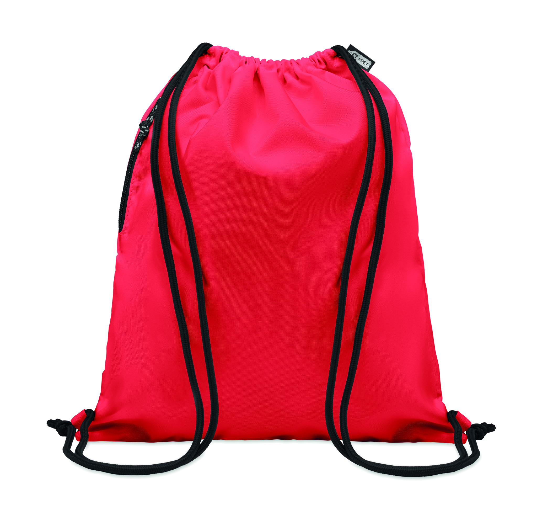 Großer Beutel mit Kordelzug. Seitliche Reißverschlusstasche. 300D RPET-Polyester