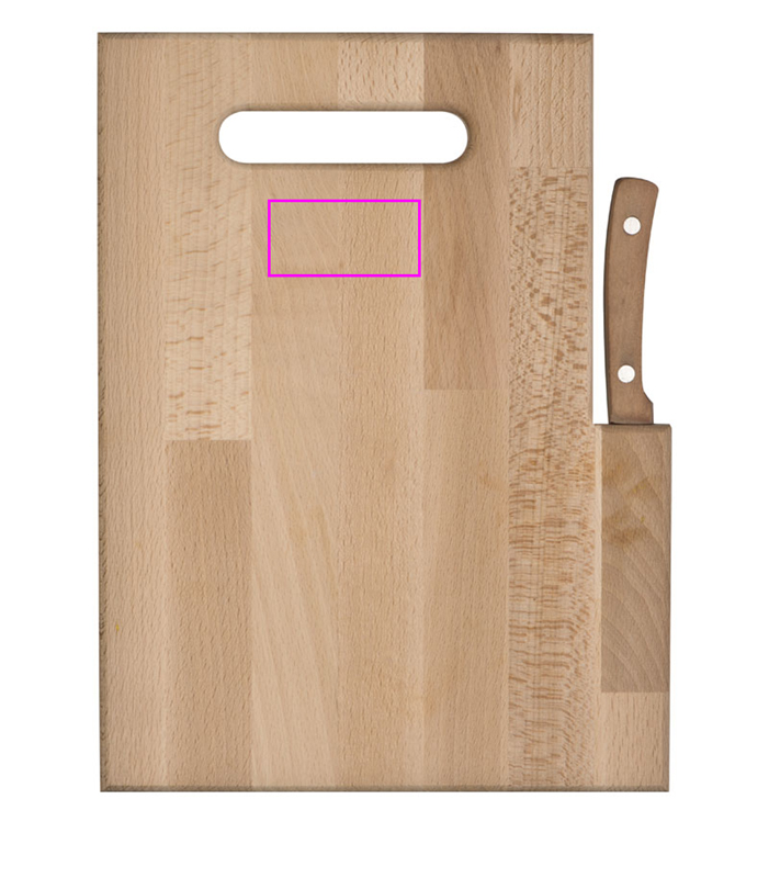 Ausgezeichnetes Duo! Holzbrett aus Buche mit integriertem Messer. Ihr Logo bringen wir mittels Lasergravur auf dem Brett an.