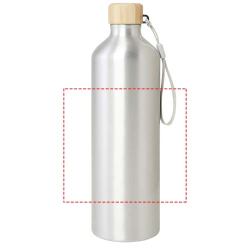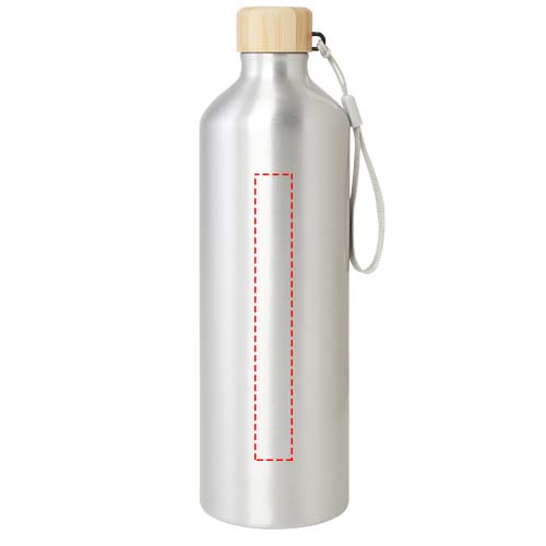 RCS-zertifizierte Wasserflasche aus recyceltem Aluminium mit einem eleganten Bambusdeckel. Die leichte, einwandige Flasche ist mit einem Riemen zum einfachen Tragen ausgestattet. Das Bambusholz stammt aus nachhaltigen, umweltfreundlichen und sozial verantwortlichen Quellen. Das Fassungsvermögen beträgt 1000 ml. Nur von Hand reinigen.