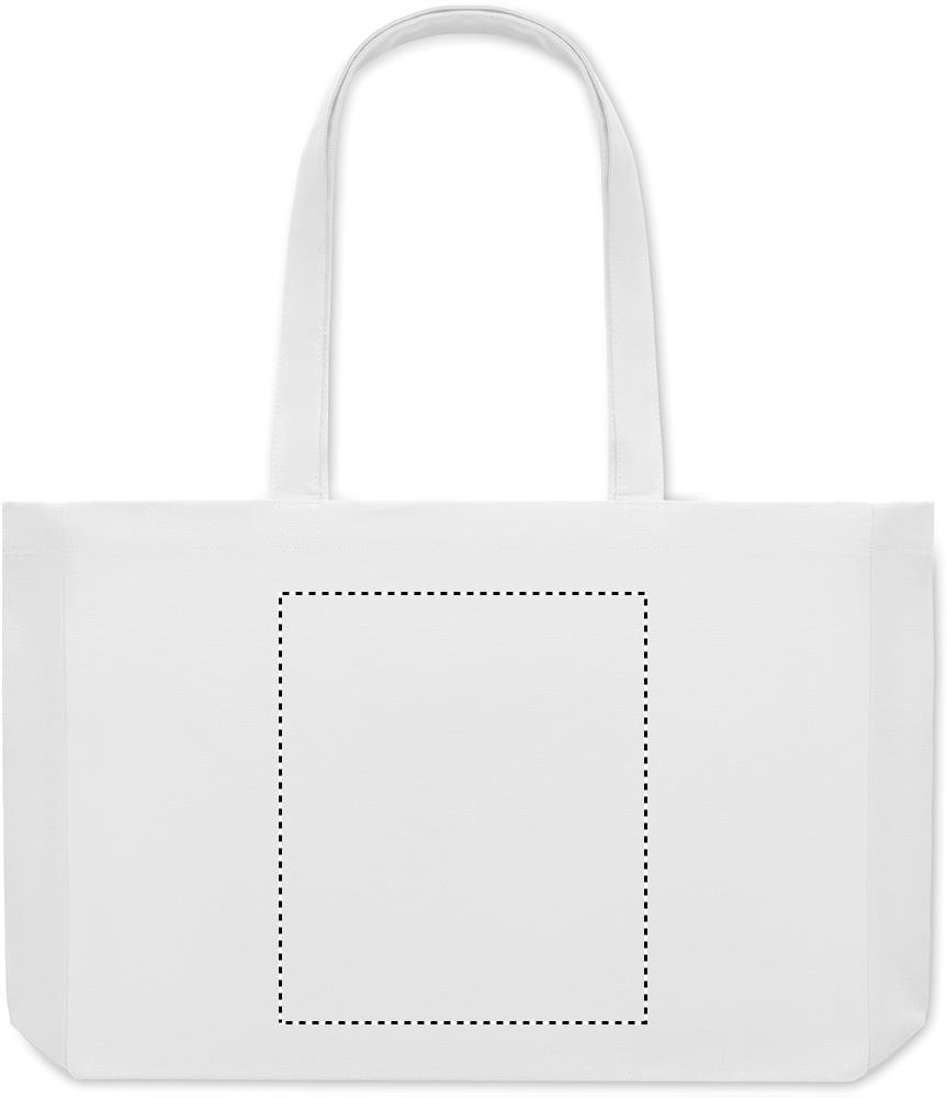 Canvas Einkaufstasche oder Strandtasche aus 50% Baumwolle/50% recycelter Baumwolle mit langen Tragegriffen und Bodenfalte. 280 g/m².