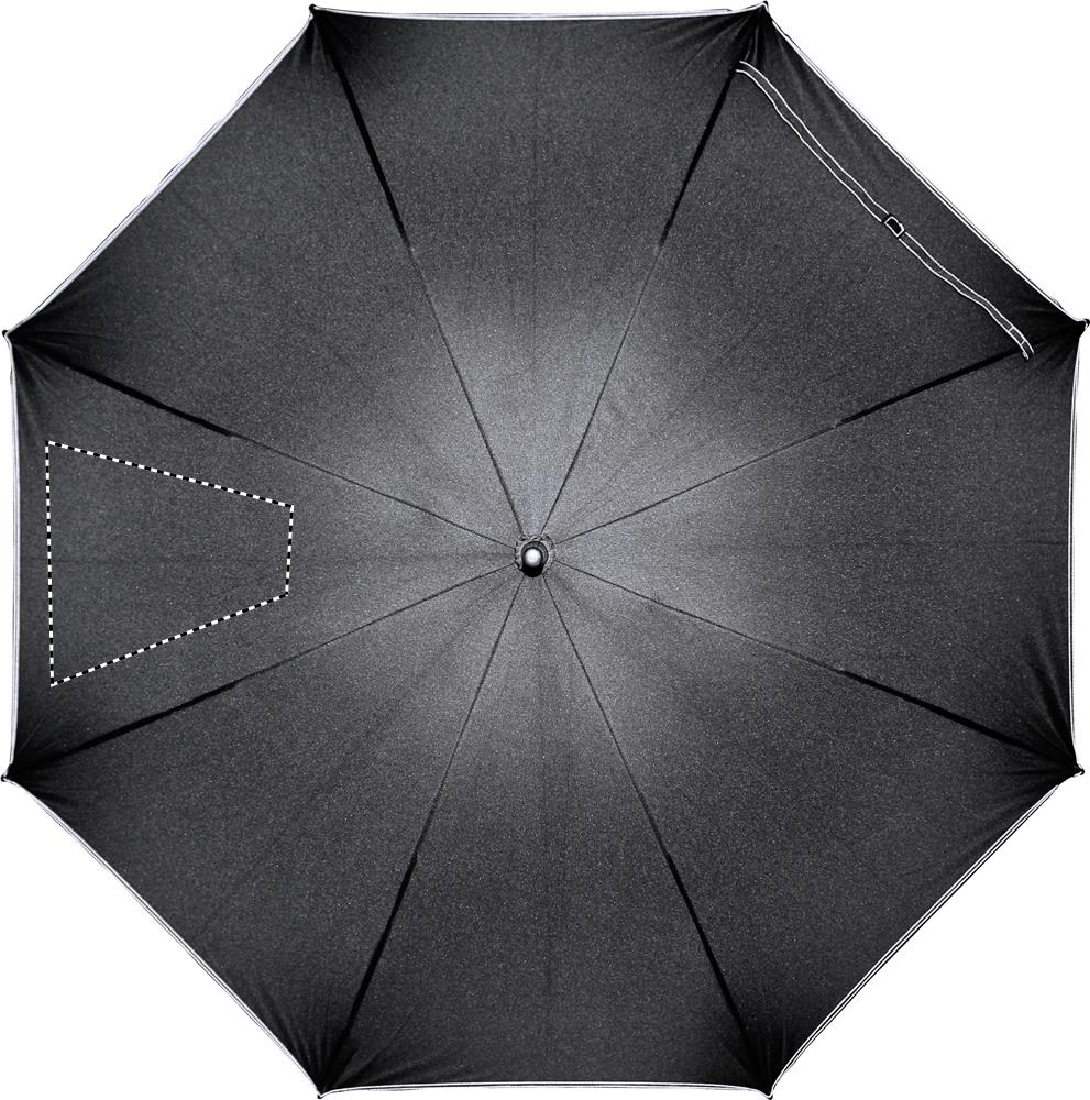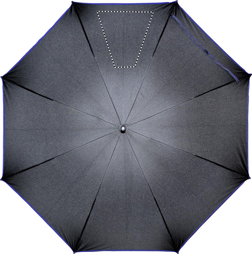 23'' Regenschirm aus 190T Seide. Windbeständig. Stock und Schienen aus Fiberglas, Spitzen aus schwarzem Kunststoff. Schwarze Segmente mit farblich passenden Nähten. Griff aus Kunststoff. Automatische Öffnung, manuelle Schließung.