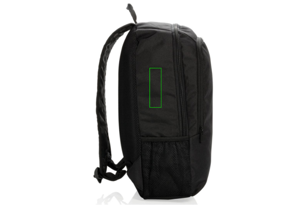 Streamlined styling and intelligently placed features add up to a minimalist footprint with this 600D & 1680D polyester backpack. 1 big main compartment sized to fit laptops with up to 17 inch displays. Second compartment with practical organisation for everything else you need to carry. With side mesh water bottle pocket. PVC free.
