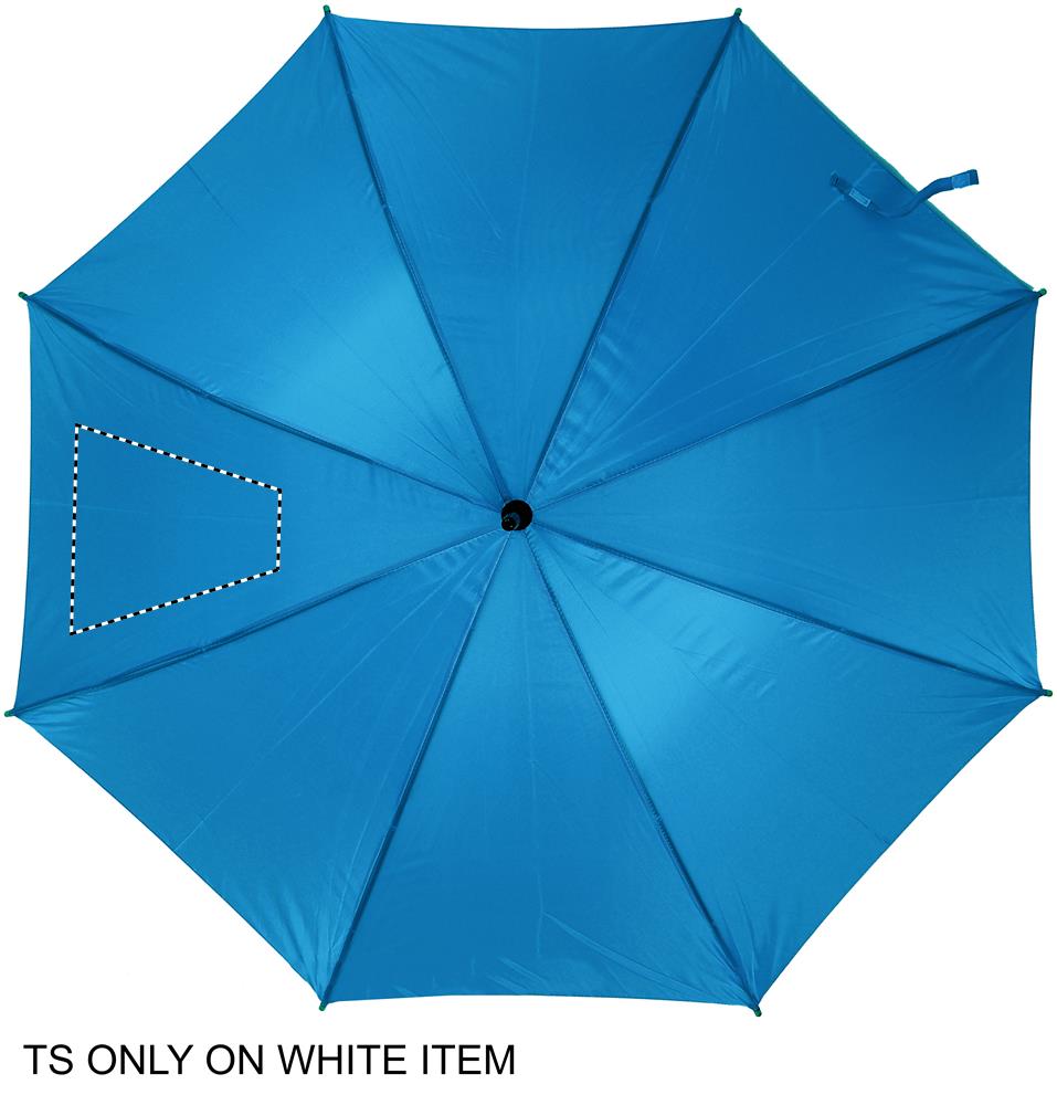 23 inch manual open umbrella in 190T polyester with wooden shaft, tips and top. Black plating metal ribs. Curved wooden handle. Wood in natural finish. Manual closure.