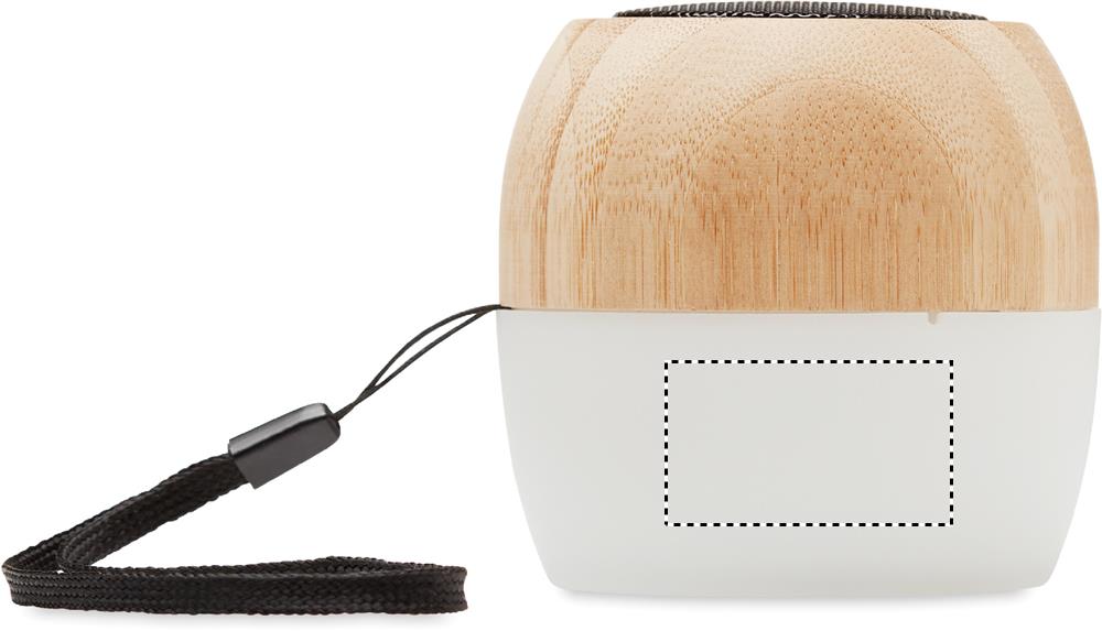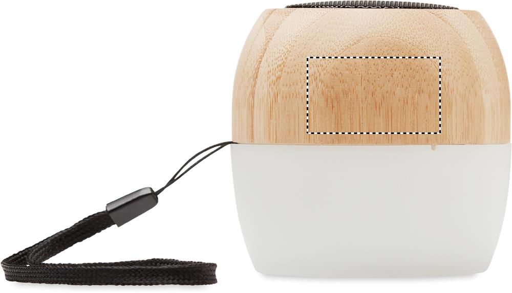 5.0 wireless speaker in Bamboo and PP with 4-colour mood light and carry strap. 1 Rechargeable Li-POL 300 mAh battery. Output data: 3W, 4 Ohm. Playing time approx. 2h. Bamboo is a natural product, there may be slight variations in colour and size per item, which can affect the final decoration outcome.