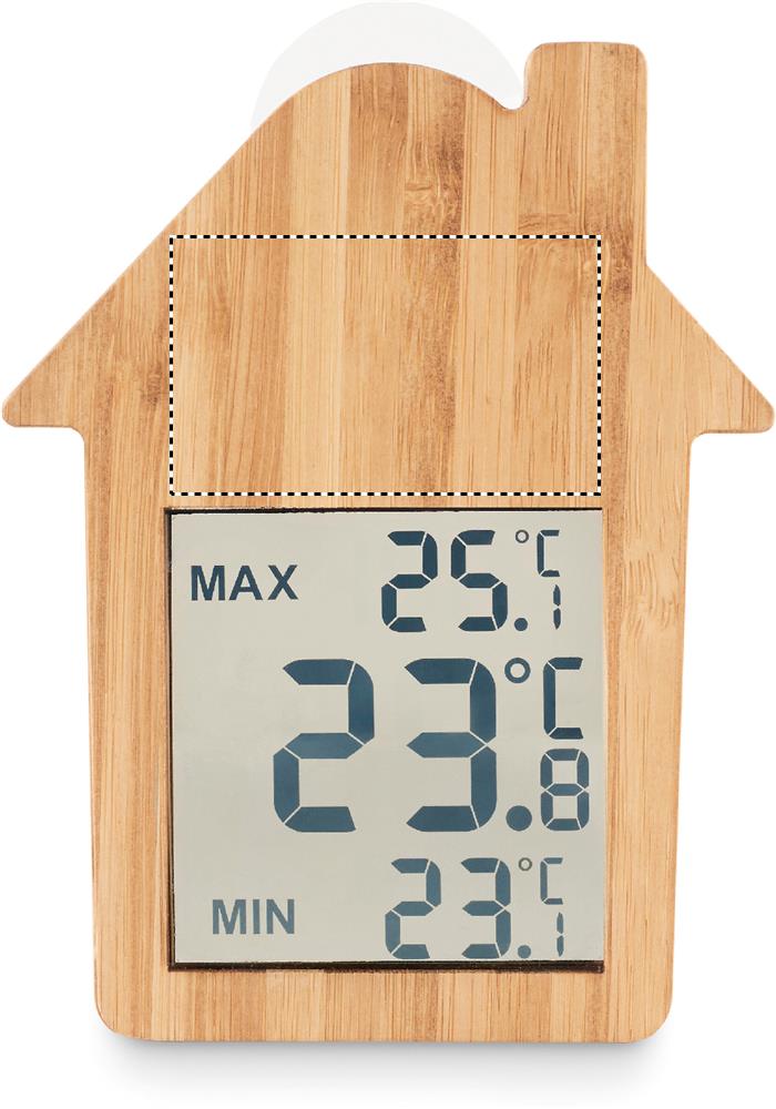 House-shaped bamboo weather station with suction cup on the back. 1 LR44 battery included. Bamboo is a natural product, there may be slight variations in colour and size per item, which can affect the final decoration outcome.