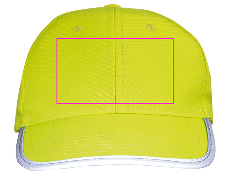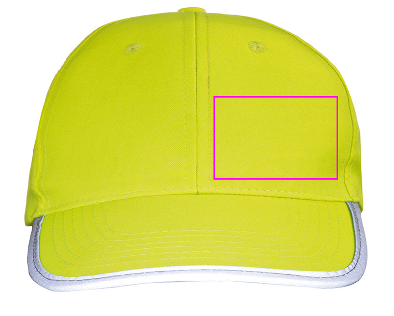 Kids baseball cap made of polyester with reflective piping on the visor and Velcro closure. We print your logo in the center of the forehead.