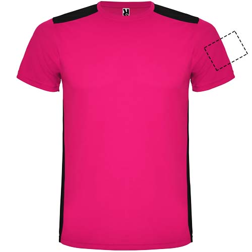 Easy-dry, technical and breathable fabric. Crew neck. Combination of two polyester fabrics on the back and shoulders. Bird's eye fabric on front and breathable 3D mesh fabric at the back. Fabric prepared for moisture absorption. Decorative zigzag backstitch on sides and shoulders. Back pattern slightly longer. Removable label.