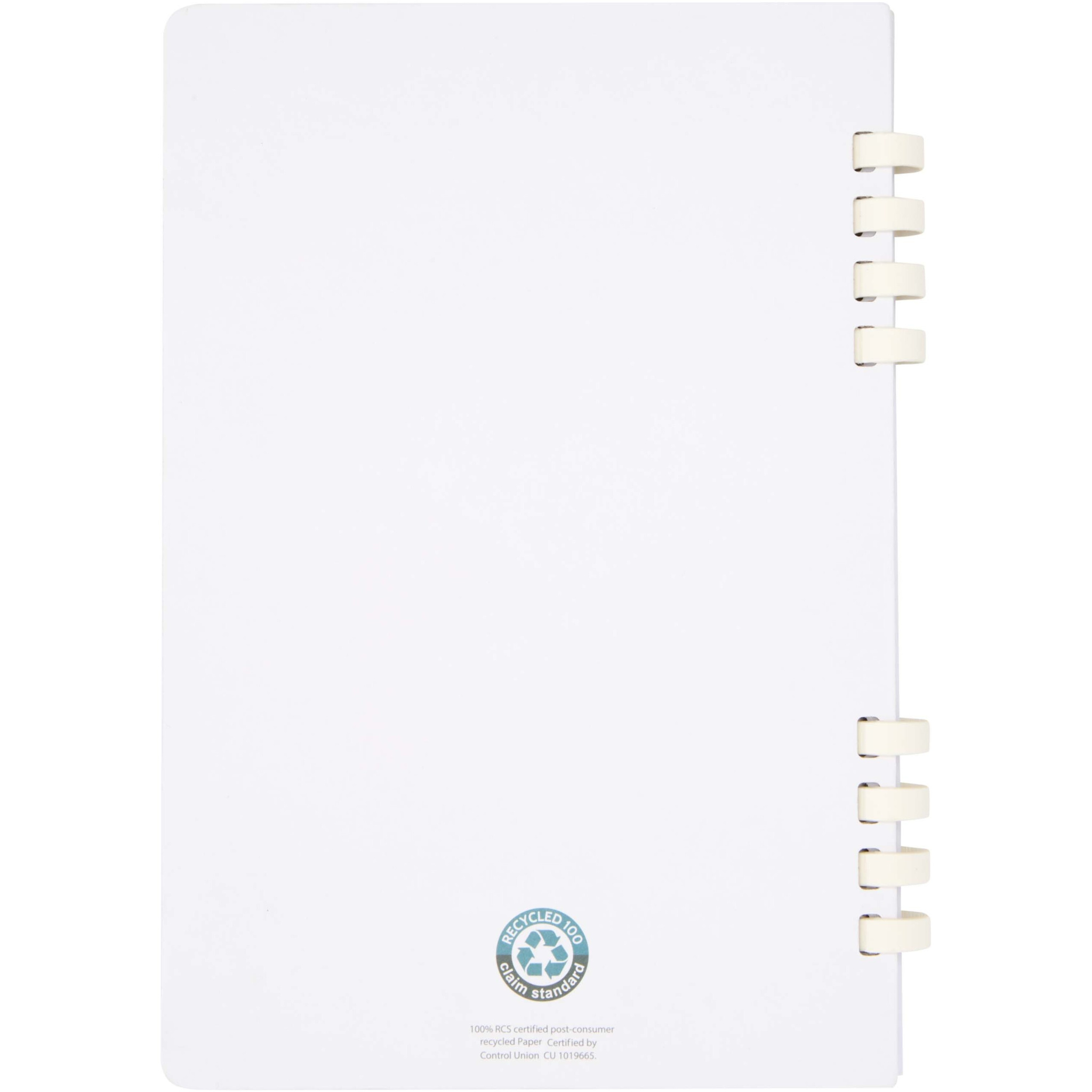 The Fil A5 hardcover spiral notebook with 60 lined sheets is made of 70 g/m² RCS certified recycled paper. Made entirely from recycled materials, it’s a practical option that’s easier to dispose of and recycle after use.