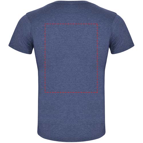Short-sleeve t-shirt with heathered effect. 1x1 ribbed crew neck with interior reinforced covered seams. Tubular fabric. Removable label.