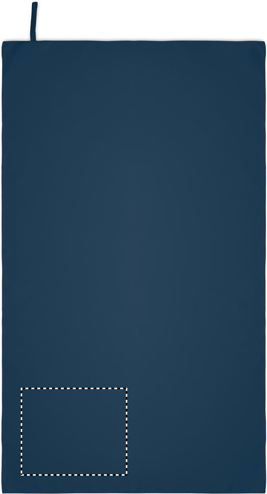 Microfibre towel made of 90% polyester and 10% polyamide with elastic hanger loop. Lightweight and quick drying. Size 70 cm x 120 cm.