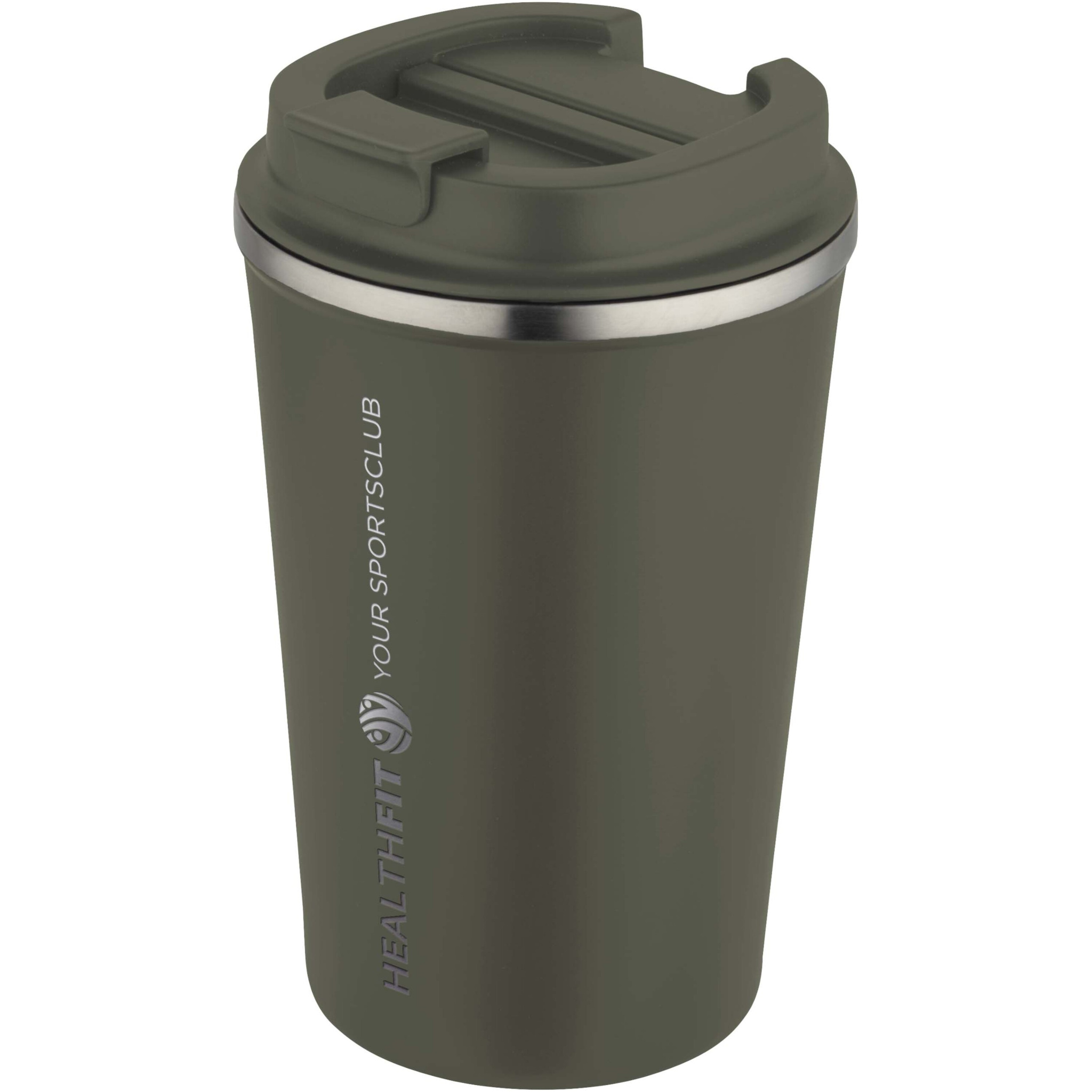 Designed for drinks on the go, this double-wall, vacuum-insulated stainless steel coffee tumbler keeps beverages at the right temperature for longer. A twist-on lid allows smooth opening and closing while making the drink easy to enjoy, and the matte coating adds a sleek finish. Volume capacity: 350 ml.