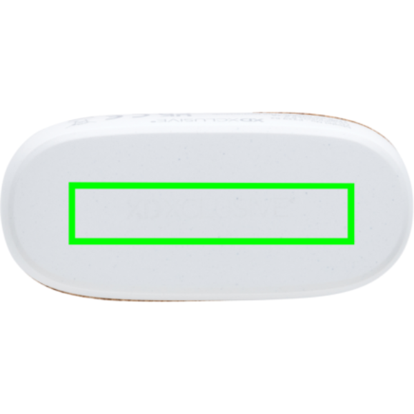 Elegant design wireless earbuds made with FSC® 100% cork and RCS (Recycled Claim Standard) certified recycled ABS. Total recycled content: 35% based on total item weight. RCS certification ensures a completely certified supply chain of the recycled materials.The perfectly fitting earbuds have a 35 mAh battery and can be re-charged in the 300 mAh charging case within 1.5 hours. With auto pairing function so easy to pair to your mobile device. Playing time on medium volume about 3 hours. With BT 5.3 for optimal connection. Operating distance up to 10 meters. With pick up and mic. Including 3 size silicone ear tips. Including RCS certified recycled TPE charging cable. Packed in FSC® mix kraft packaging. Item and accessories 100% PVC free.