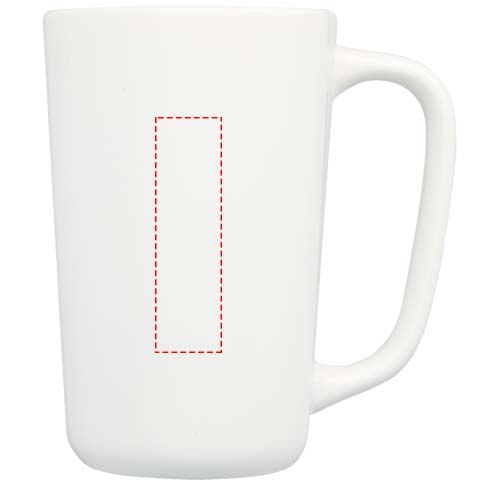 Large contemporary ceramic mug with matt finishing exterior. The Perk mug features a big surface, ideal for maximum logo exposure. Dishwasher safe for all printing methods. Volume capacity is 480 ml. Presented in a recycled cardboard gift box.