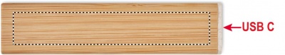 Power bank 2600 mAh in bamboo case. Capacity for smartphone, output current DC5V/2A. Including USB Type-C charging cable with Type-A adaptor. In/Output: USB Type-C.