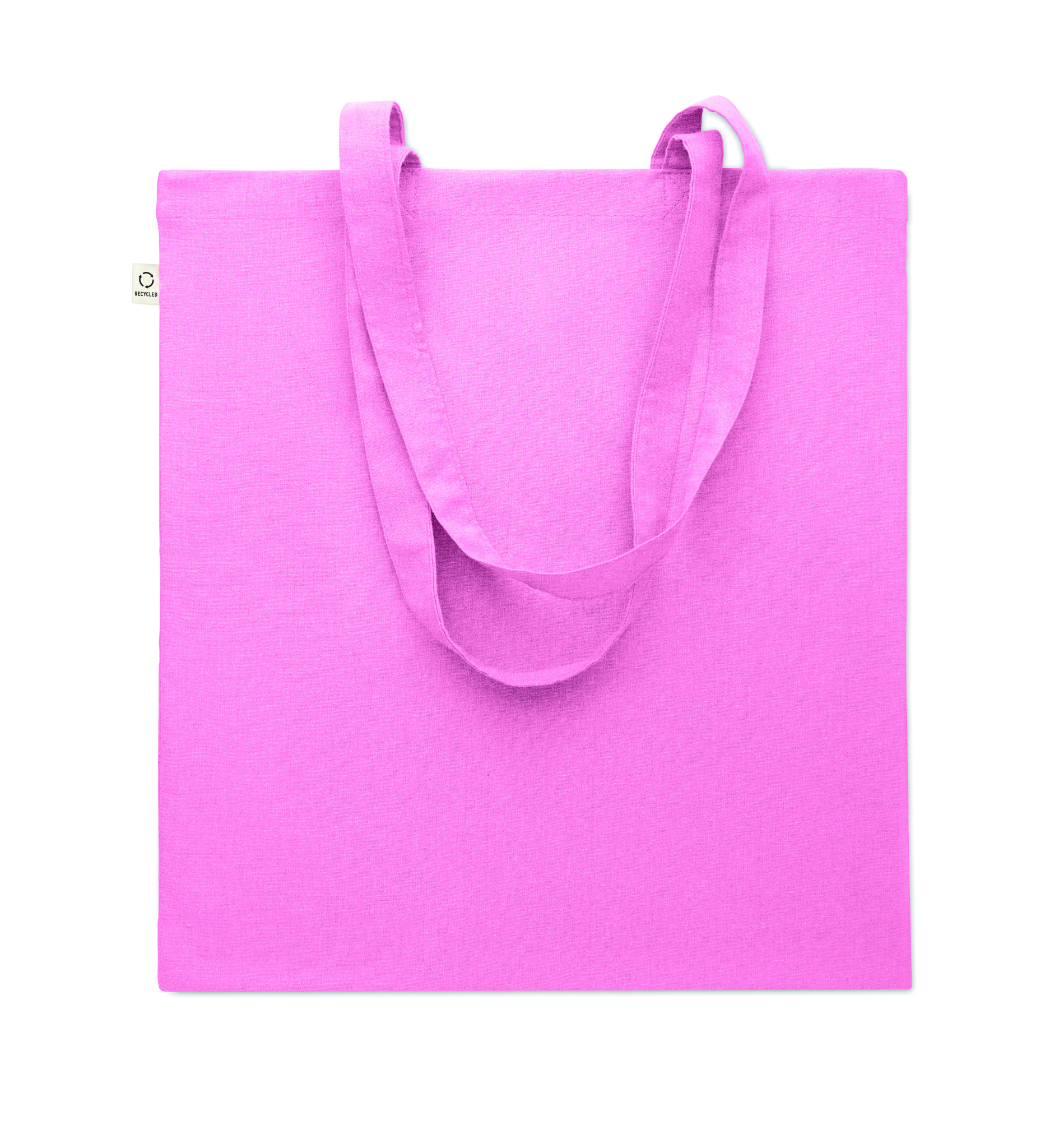 Recycled pre-consumer cotton shopping bag (70% recycled cotton and 30% RPET) with long handles. 140 gr/m².