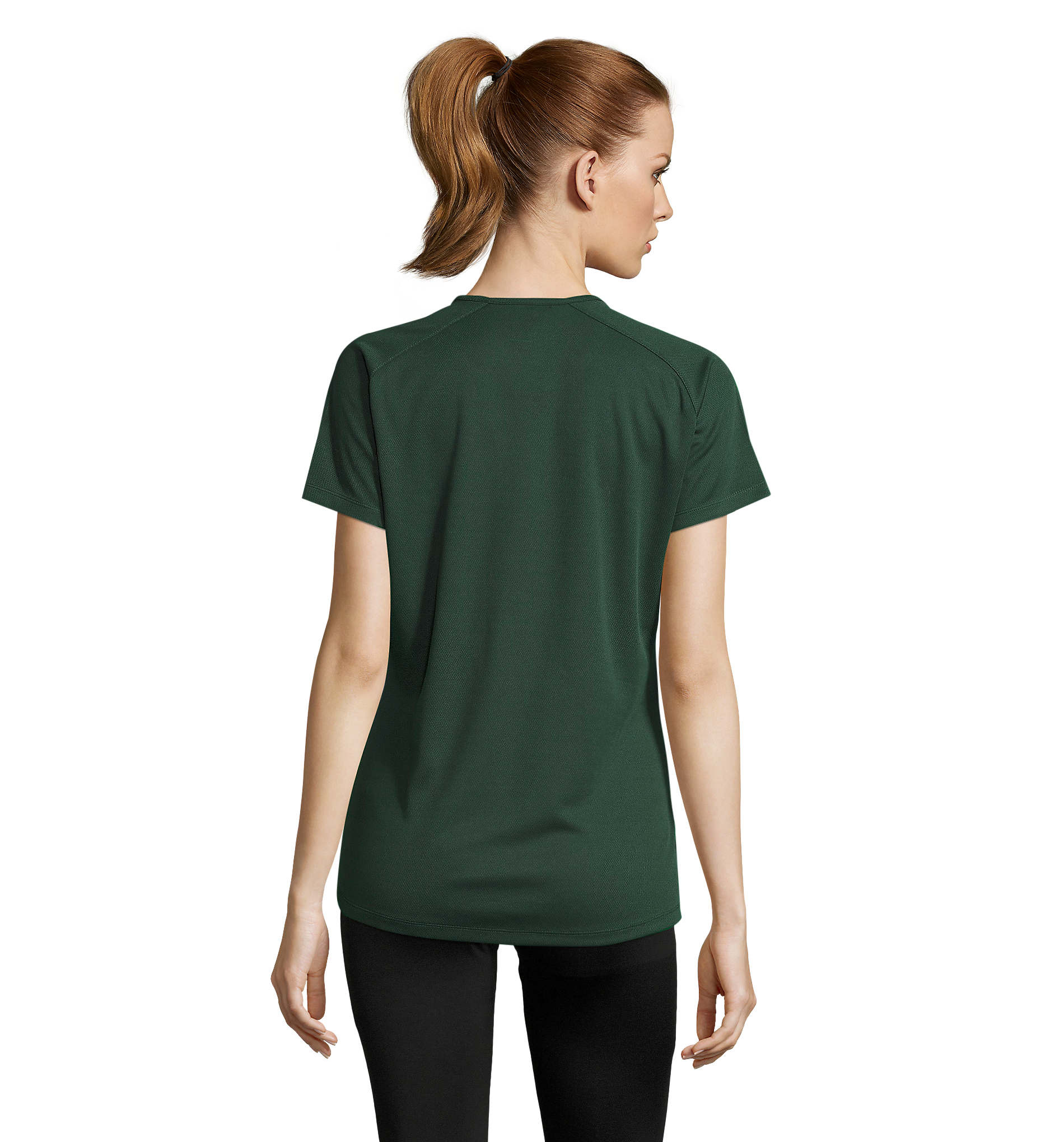 SOL'S SPORTY Women's T-shirt in 140g/m² breathable polyester material with raglan sleeves and flatlock seams makes this product ideal for all your sports activities. Figure-sewn fit, banded collar and longer back. It comes in a variety of sizes and colours as well as in neon colours. Fabric details: 140g/m2 100% polyester mesh. Only sold with print. Sublimation print available on white item only.