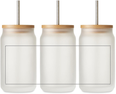Mason cocktail jar with special coating for sublimation with bamboo lid. Including a Stainless Steel straw. Capacity:400 ml. Bamboo is a natural product, there may be slight variations in colour and size per item, which can affect the final decoration outcome.