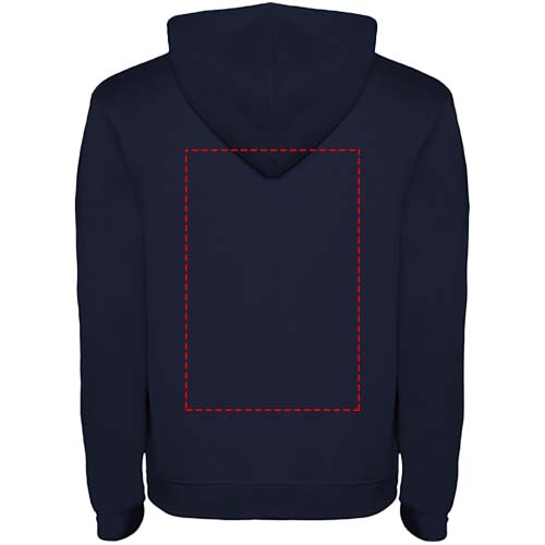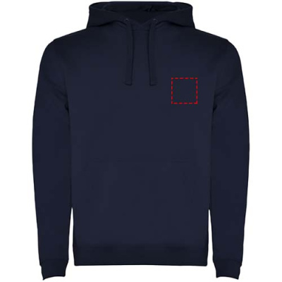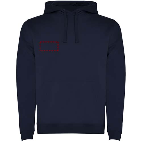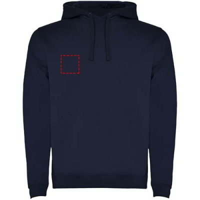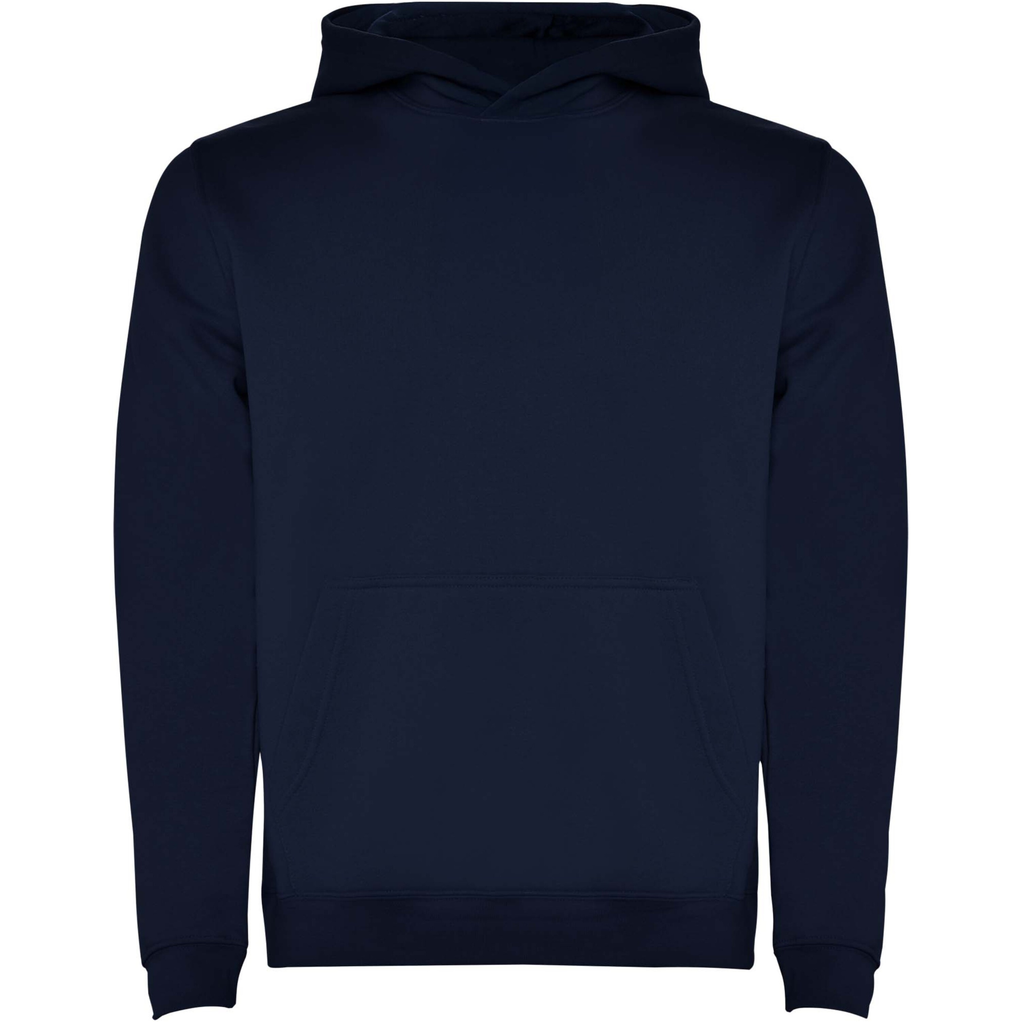 Two-colour hoodie with double fabric. Reinforced covered seams in collar and kangaroo style pocket. 1x1 elastane rib in cuffs and waistband. Removable label. The model is 120 cm and is wearing size 5/6.