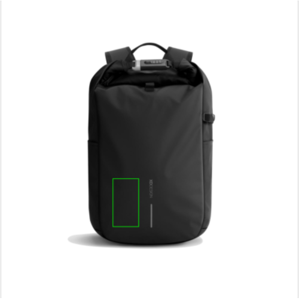 The new Urban anti-theft backpack stands as the ideal travel companion, ensuring security and convenience. By rolling up the main compartment and securing it with the reinforced combination lock, the backpack offers complete closure, which can also be used to lock the bag around a fixed object. Hidden pockets on the back. The bag is equipped with a side water bottle pocket. Internally, padded compartments cater to a 16” laptop and mesh pockets provide organisation for your essentials. Crafted with Aware™ traceable recycled polyester and finished with a soft touch water resistant PU coating. 11% recycled content. Registered design®