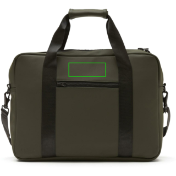 Modern and clean design computerbag. Functions and form comes together, besides the ordinary computer pocket this bag also has place for pens, documents and other belongings. The bag is produced in a water repellent material, with both shoulder strap and carry handles. It also includes an attached band on the backside, so it fits your trolley when travelling.Suitable for computers with an overall size of 17 inches. Please note that the dimensions of the display are not the same as the dimensions of the entire computer.