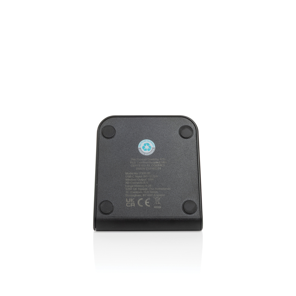 Logo trade advertising products picture of: VoltPerch RCS recycled plastic 15W magnetic wireless charger