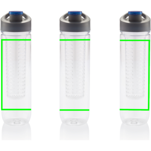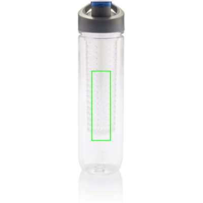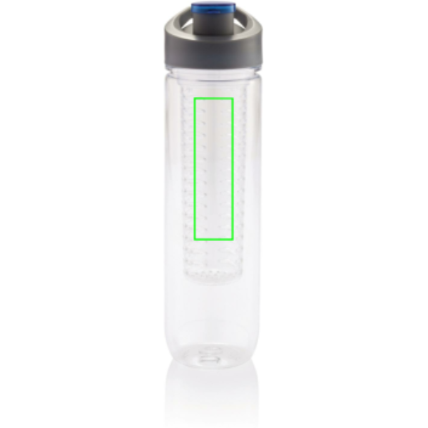 800ml Tritan bottle with fruit infuser compartment. Infuse your water with a load of vitamins and flavour by adding fresh fruits into the infuser compartment. The infuser compartment can also be used to chill your water by adding ice cubes.