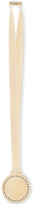 Wooden medal with cotton strap and wheat straw/PP buckle.