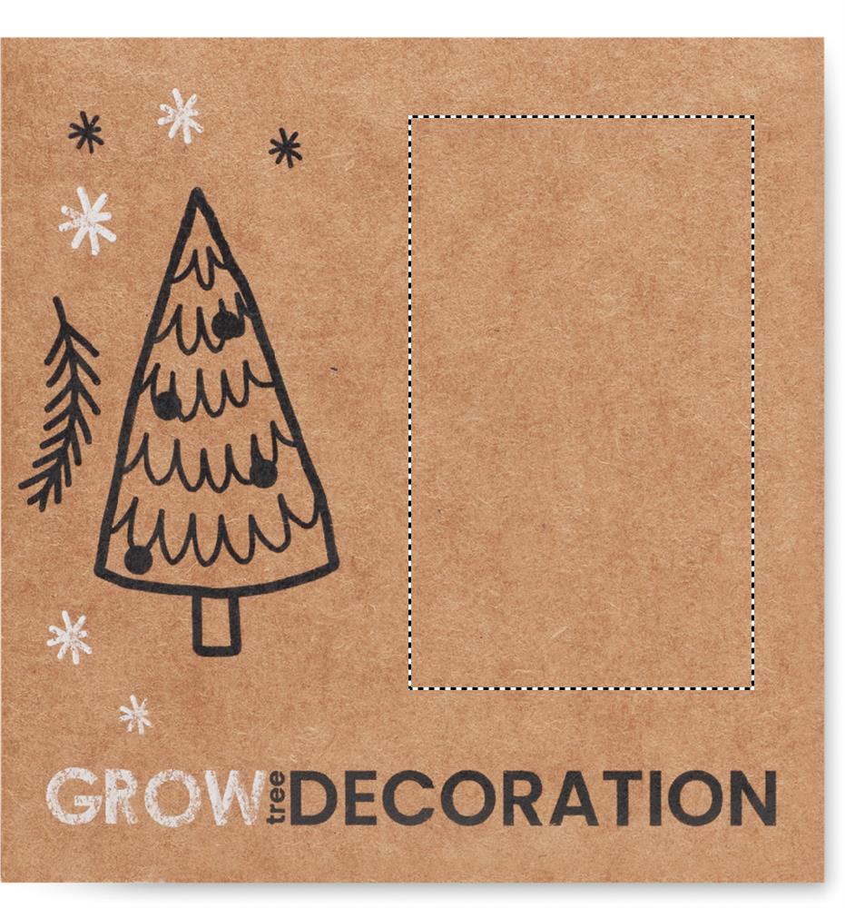 Wooden tree shaped decoration hanger with jute cord including spruce seeds. Presented in kraft envelope. Made in EU.