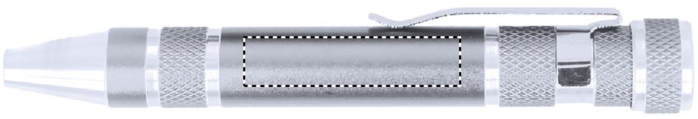 Tööriistakomplekt pikendatava alumiiniumist taskulambiga, 3 LED-tulega ja alumiiniumist mitme tööriistaga pliiatsi kujuga. Kaasas 4 piluga ja 4 Philipsi kruvikeeraja pead. Kaasas 4 patareid LR44. Esitatakse karbis.