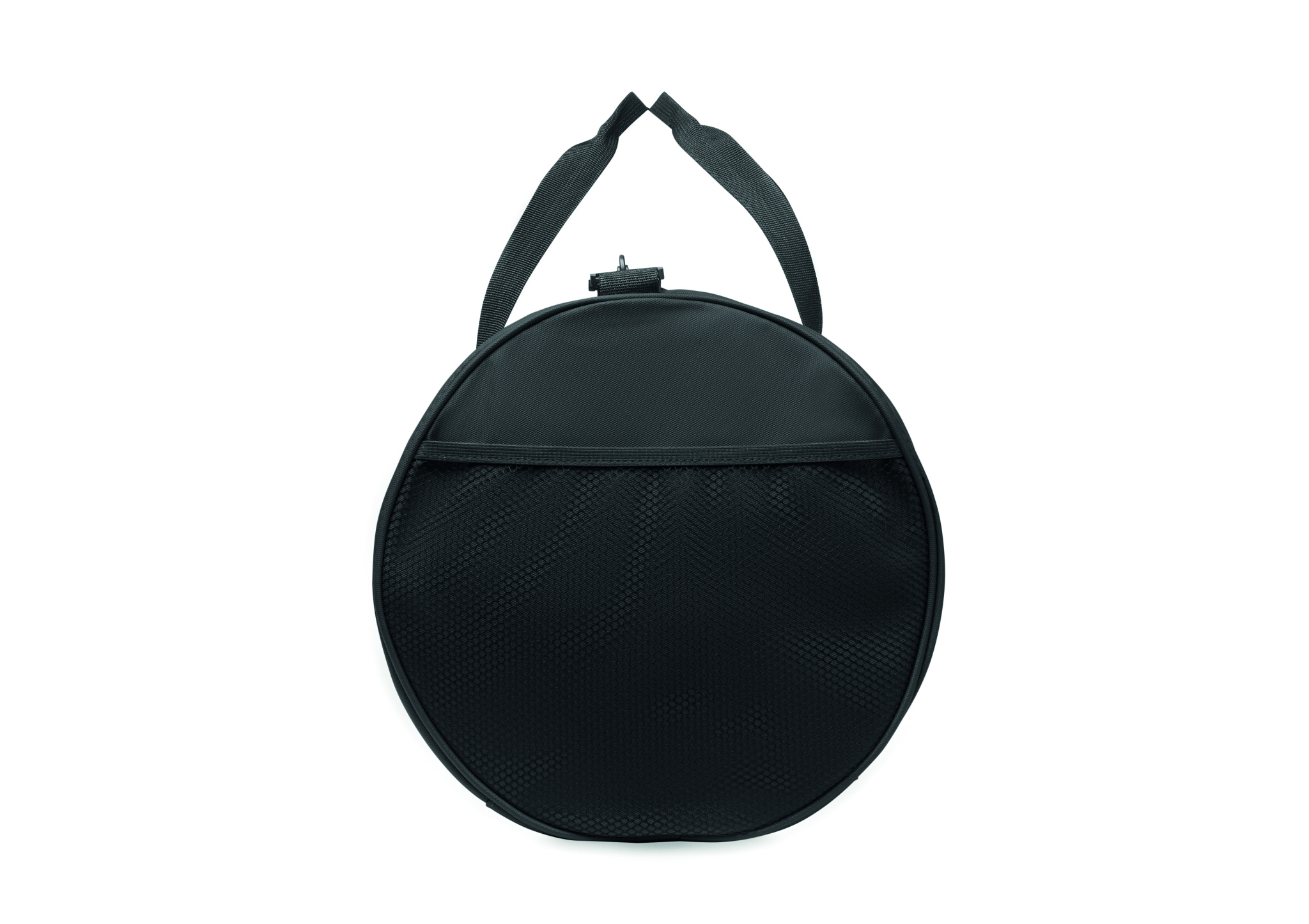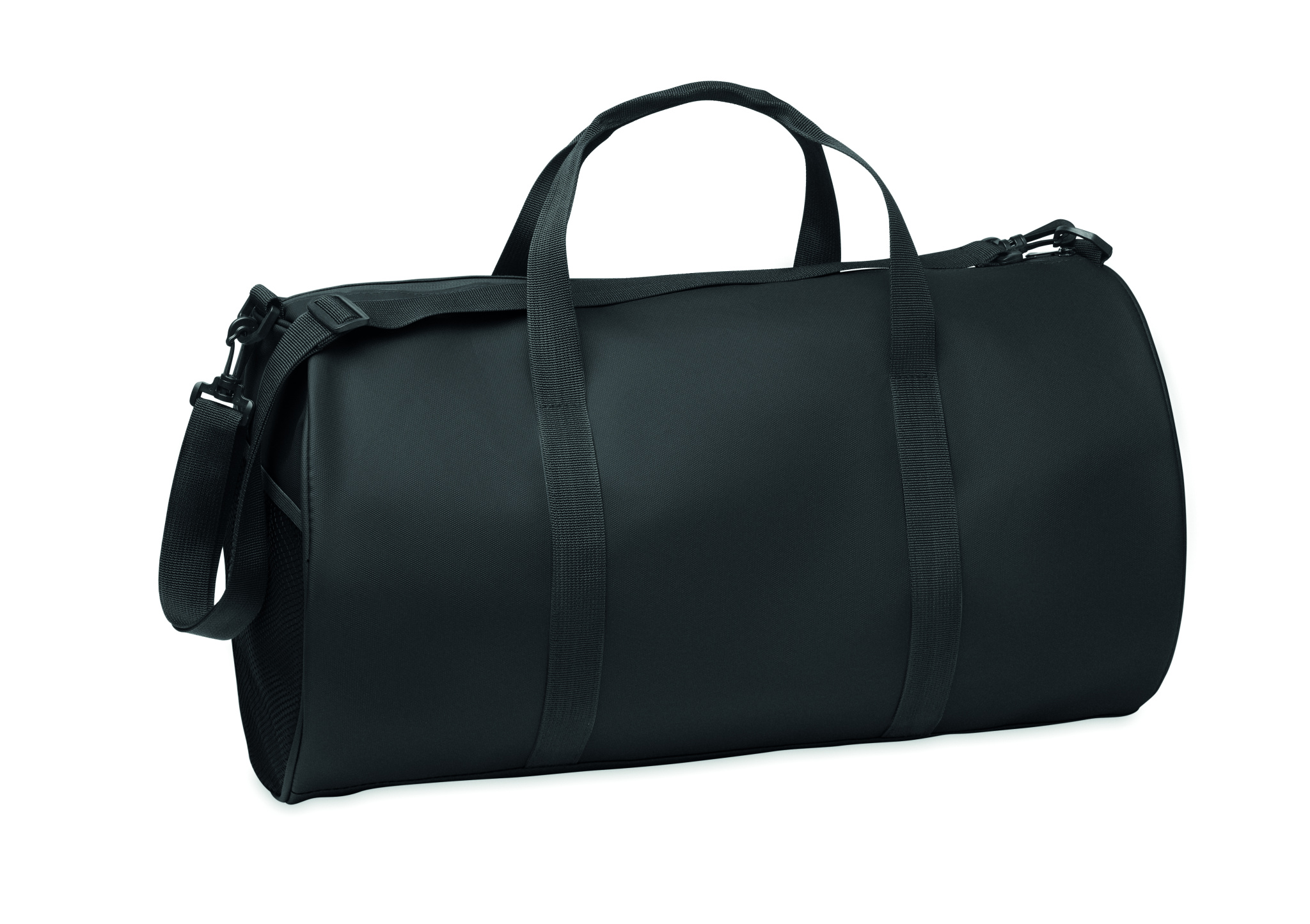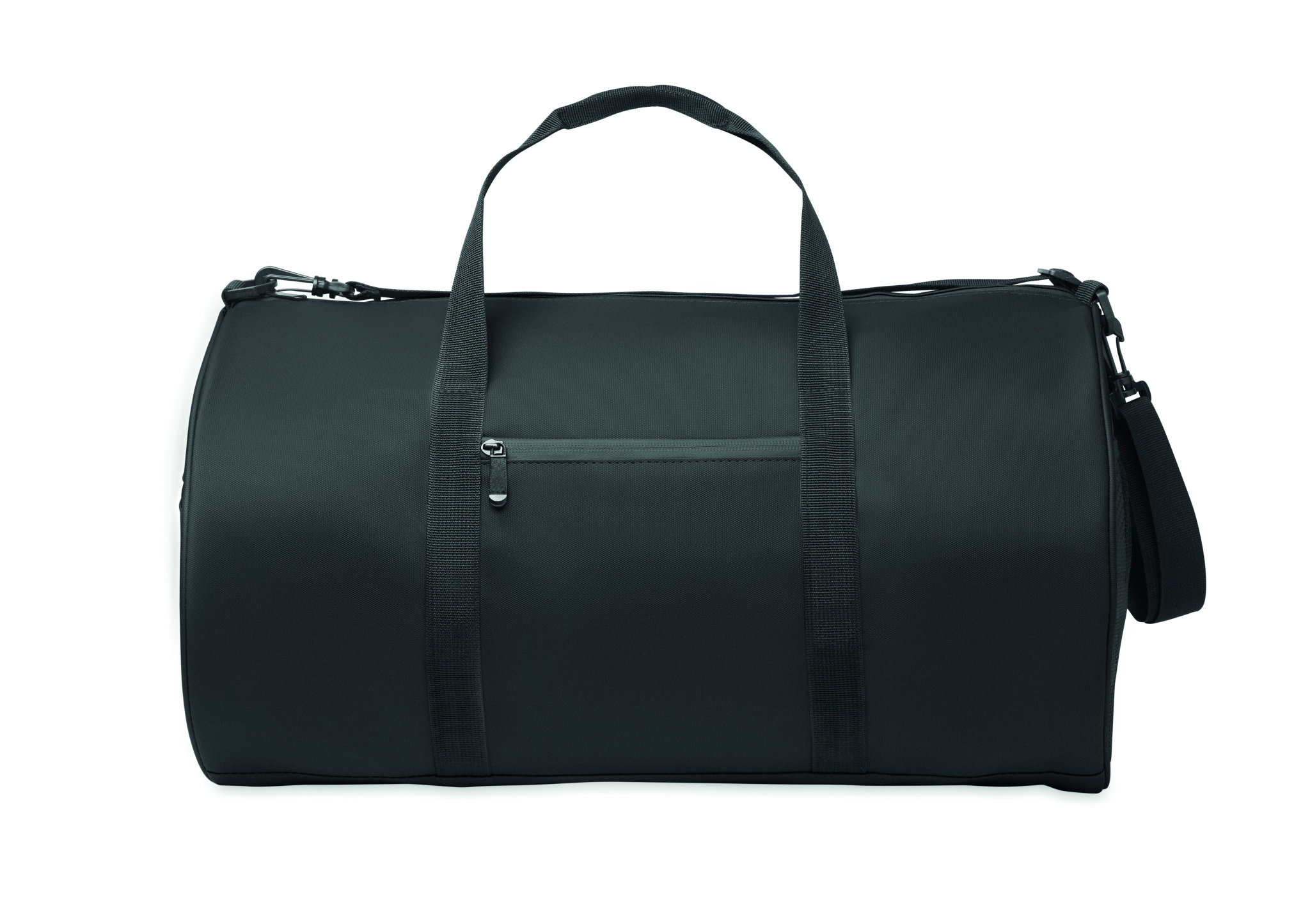 Must 600D RPET polüestrist PU-kattega reisikott. Eesmine lukuga tasku. Sees 210D RPET polüestervooder. 1 küljel lukuga sahtel / 1 küljel võrgust sahtel. Sees lukuga tasku.