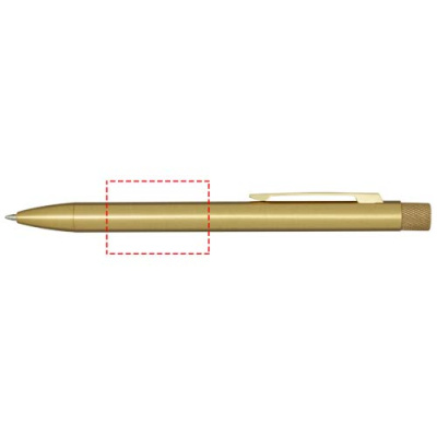 Värvilise pihustuskattega pastapliiats. Nupp ja ots on valmistatud messingist, silinder on valmistatud taaskasutatud messingist ja klamber on valmistatud rauast. Tindi värvus: sinine. Kirjutamise pikkus: 1000 meetrit. Otsa suurus: 1,0 mm. Tarnitakse kinkekarbis.
