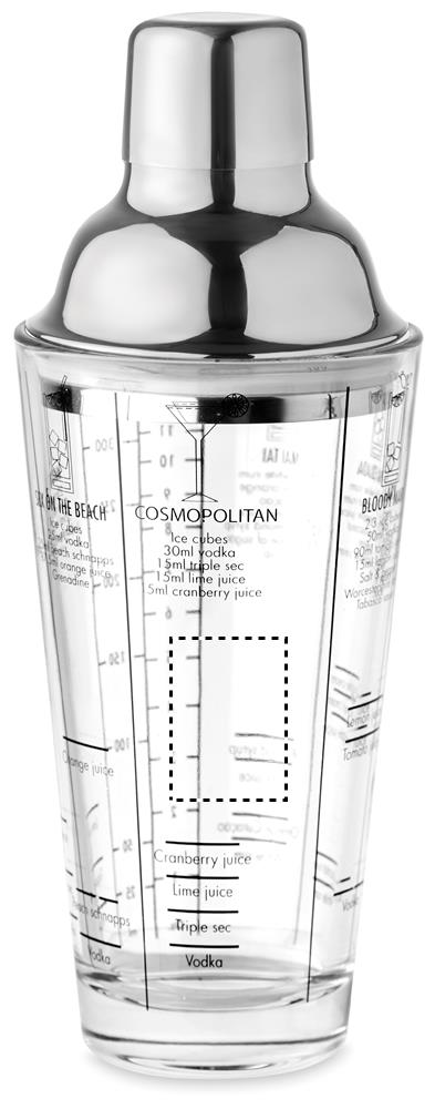 Roostevabast terasest kaanega klaasist kokteilišeiker koos kurnaga. Klaasile trükitud kokteiliretseptid ja mõõdud. Mahutavus: 400 ml.