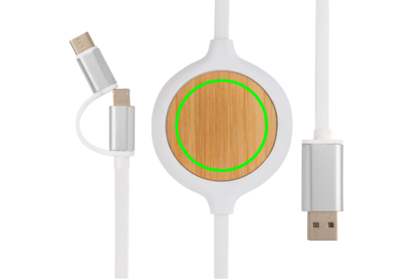 Logotrade ärikingid pilt: Kolm-ühes kaabel 5W bambusest juhtmevaba laadijaga