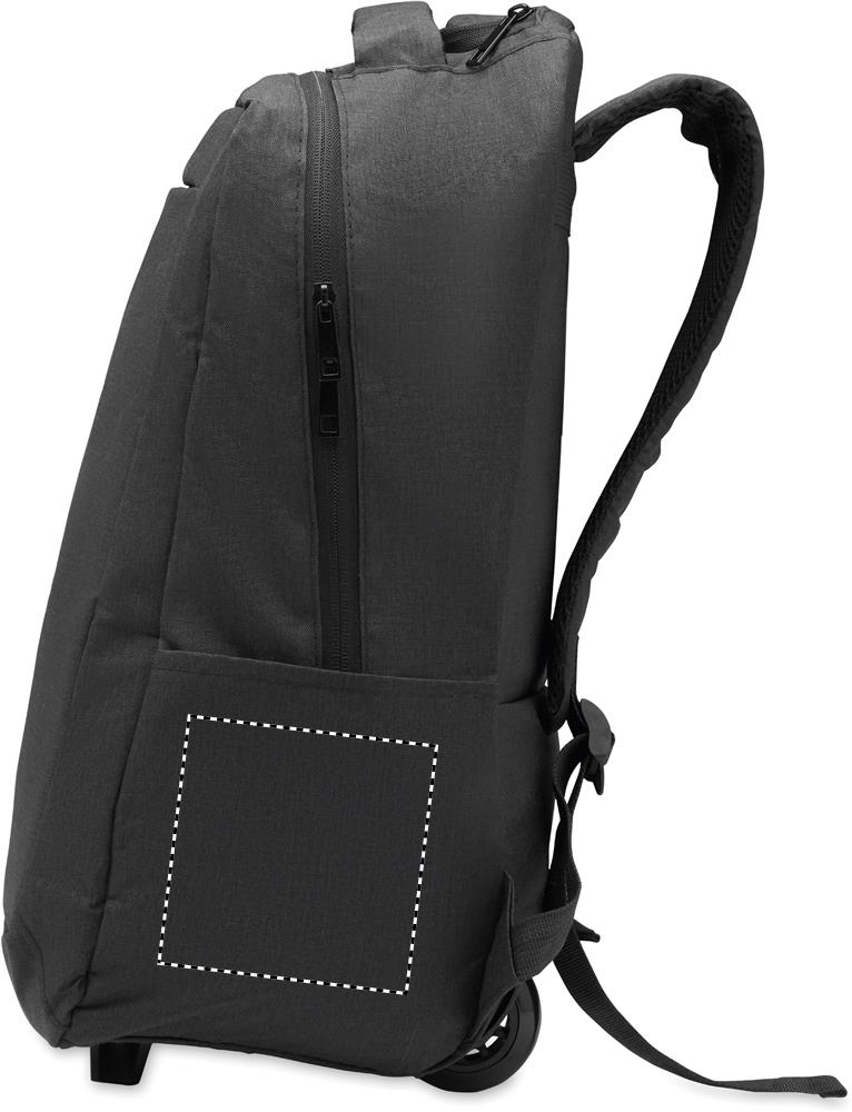 Logo trade meened foto: Ratastega kaasaskantav seljakott, valmistatud 600D RPET-polüestrist.