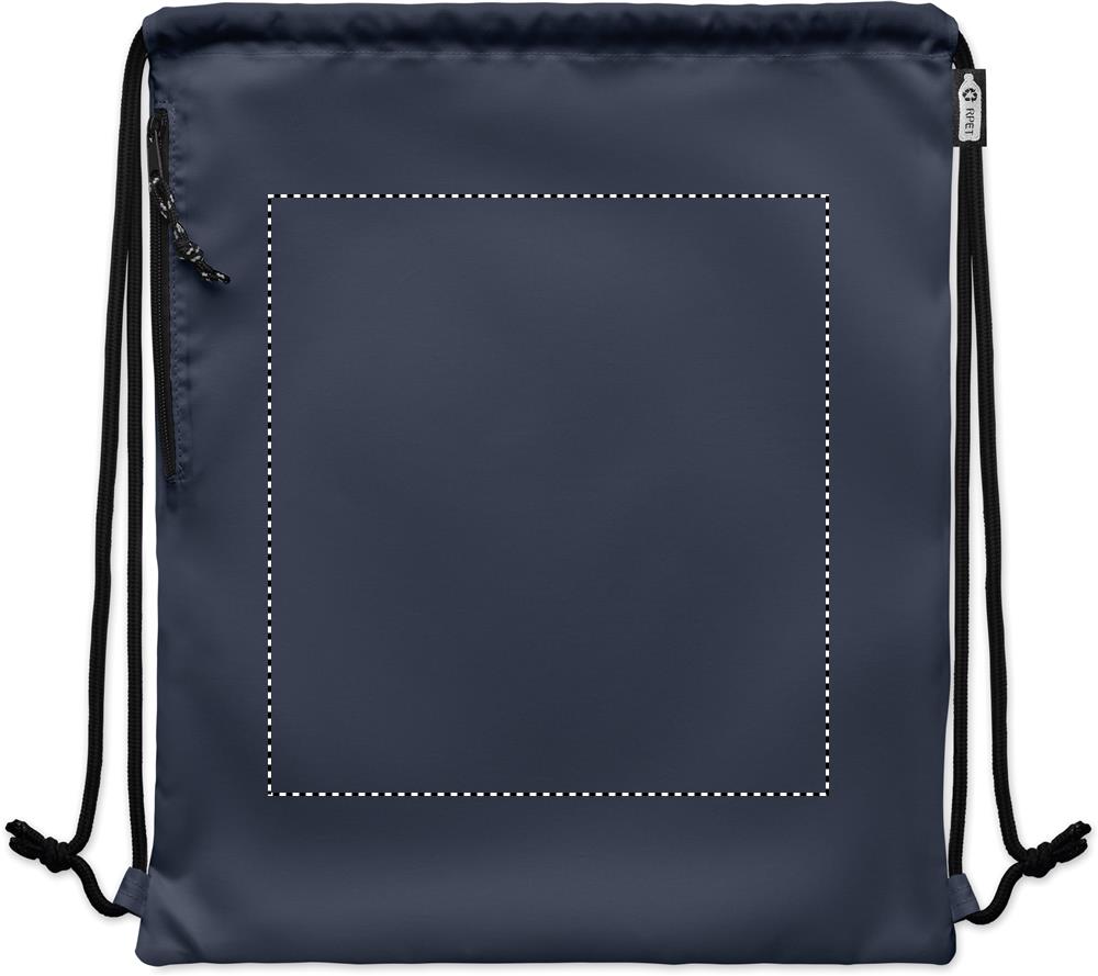 Suur nööriga kott 300D RPET polüestrist külgmise lukuga välistaskuga.