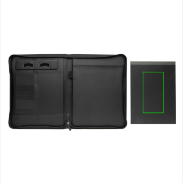 See kaunis tõmblukuga RCS rPU deluxe tehniline portfell on valmistatud RCS (Recycled Claim Standard) sertifitseeritud taaskasutatud materjalidest. RCS-sertifikaat tagab taaskasutatud materjalide täielikult sertifitseeritud tarneahela. Sile luksuslik pind annab portfellile šiki välimuse. A4 portfelli seest leiate vooderdatud 64 g/2 ümbertöödeldud paberist märkmiku, mis sisaldab 20 lehekülge. Sees on 1 telefonisuuruses tasku, telefonihoidik, pliiatsi aas ja 2 visiitkaardipesa. Valmistatud 100% taaskasutatud RCS-sertifikaadiga taaskasutatud PU-st. Taaskasutatud kogusisaldus: 14% kauba kogukaalust. PVC vaba.