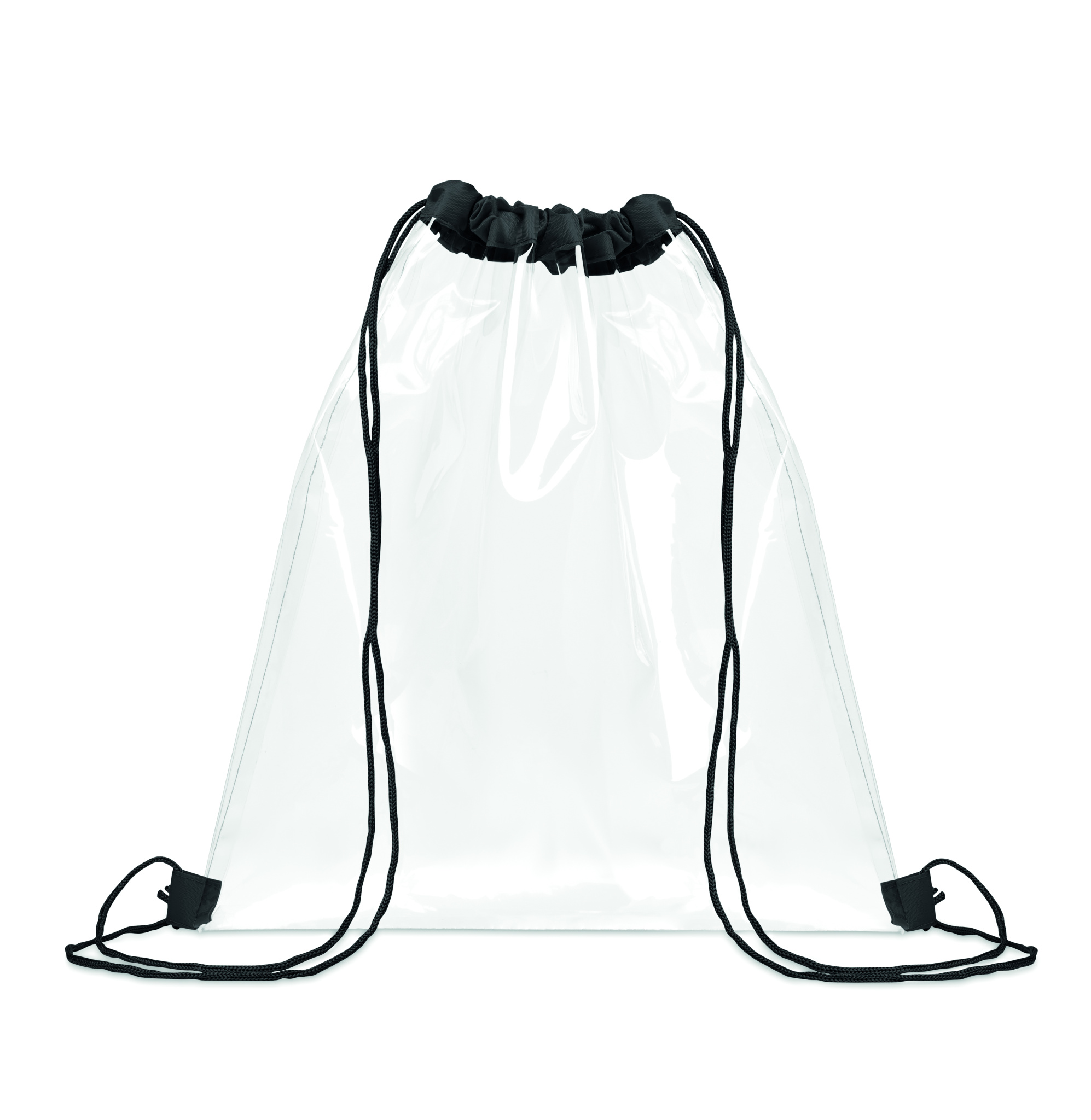 Läbipaistev EVA-st ja PVC-st pingutusnööriga kott. Polüestrist nöörid.