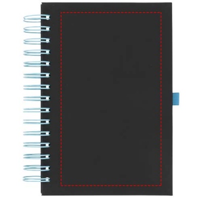 Sellel toredal märkmikul musta värvi kunstnahast kaaned, traatkinnis ja pliiatsisilmus. Sisaldab 160 kreemikasvalget lehte (70g/m2).