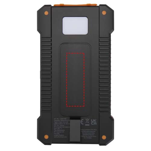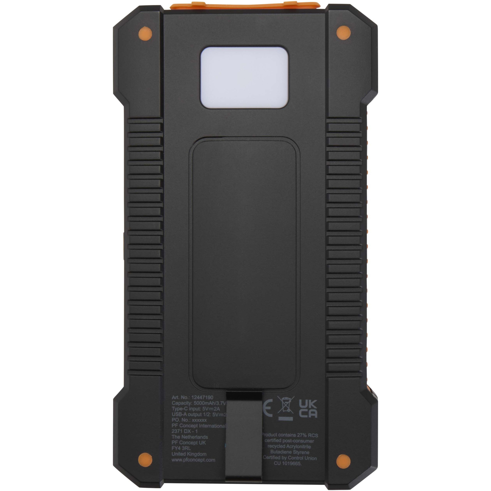 Altair 5 000 mAh:n ja 10 W:n kierrätysmuovista valmistettu kestävä aurinkoenergialla toimiva varavirtalähde, jossa on sisäänrakennettu taskulamppu