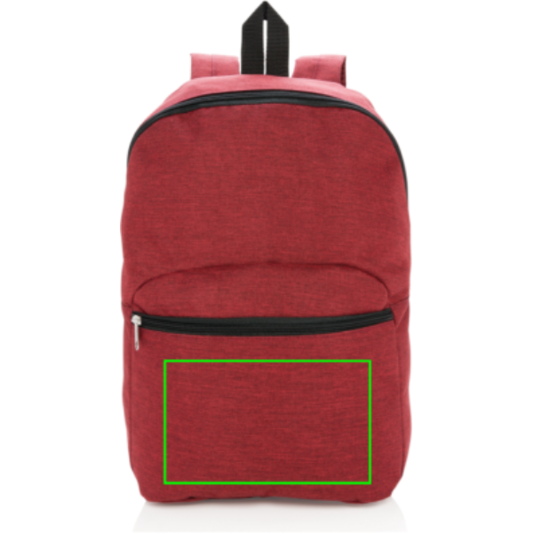 Kompakti ja kevyt kaksivärinen 600D polyesterinen reppu. Sisältää vetoketjullisen etutaskun.
