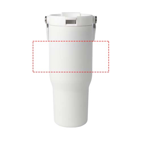 Bronx 900 ml:n RCS-sertifioidusta kierrätetystä ruostumattomasta teräksestä valmistettu kuparityhjiöeristetty juomamuki, jossa on kaksitoiminen kansi, Valkoinen