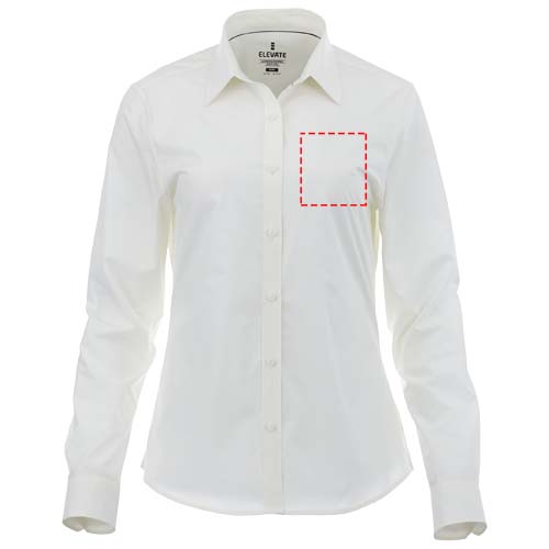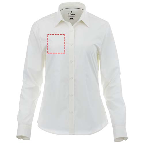Hamell pitkähihainen naisten stretch-paita - ihanteellinen yhdistelmä tyyliä ja mukavuutta. Tässä kudotussa paidassa on kevyt popliinikangas, jossa on 97 % puuvillaa ja 3 % elastaania. Popliinikangas on tunnettu tiiviistä rakenteestaan, joka takaa poikkeuksellisen kestävyyden säilyttäen samalla pehmeän ja sileän tuntuman ihoa vasten. Tämä tarkoittaa, että Hamell-paita ei ole ainoastaan mukava päällä, vaan se kestää myös jokapäiväistä kulutusta ja takaa pitkäaikaisen käytön. Joustavuus tarjoaa äärimmäistä liikkumisvapautta, mikä takaa optimaalisen mukavuuden koko päivän ajan. Piilotettu nappikaulus lisää hienostuneisuutta säilyttäen samalla siistin ilmeen. Muotoonleikattu naisille istuvuuden takaamiseksi.