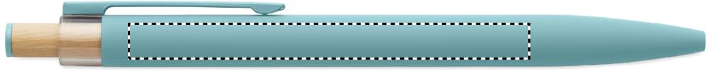Kierrätysalumiinista valmistettu kuulakärkikynä, jossa on bambupainike, jossa on yhteensopivat värilliset yksityiskohdat ja yhteensopiva metalliklipsi. Sininen muste.