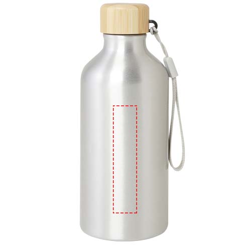 RCS-sertifioitu kierrätetystä alumiinista valmistettu vesipullo tyylikkäällä bambukannella. Tässä kevyessä, yksiseinäisessä pullossa on hihna, jonka ansiosta pulloa on helppo kantaa. Bambu on peräisin luontoa säästävistä, sosiaalisesti ja ympäristön kannalta vastuullisista lähteistä. Tilavuus on 500 ml. Pestävä käsin.