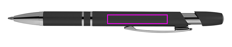 Metallisen näköinen muovinen kuulakynä suurella täyttö- ja työntötoiminnolla. Painamme logosi klipin alle.