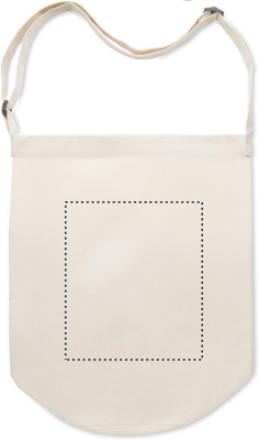 Kangaskassi, jossa pitkä säädettävä olkahihna ja suuri etutasku, jossa on nepparikiinnitys. Sisältää sisätaskun. Materiaali 270 gr/m²canvas.