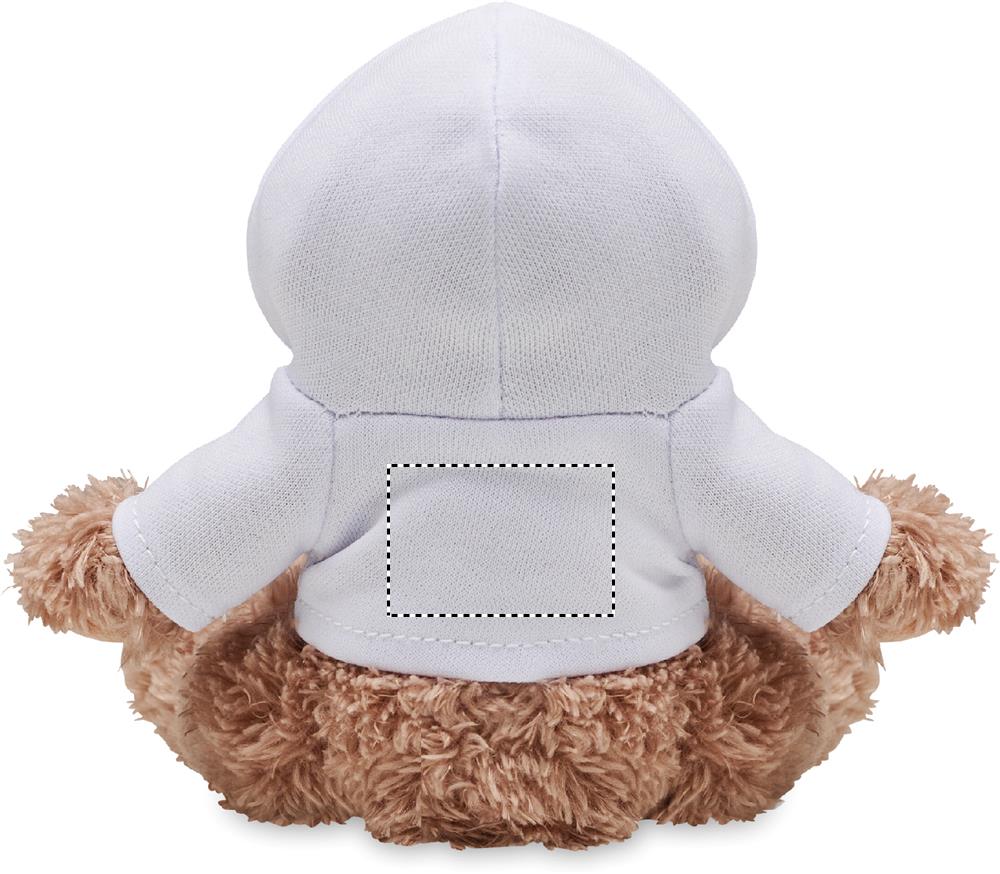 Koira pehmolelu, jolla on hupullinen paita. Ihanteellinen sublimaatiopainatusta varten.