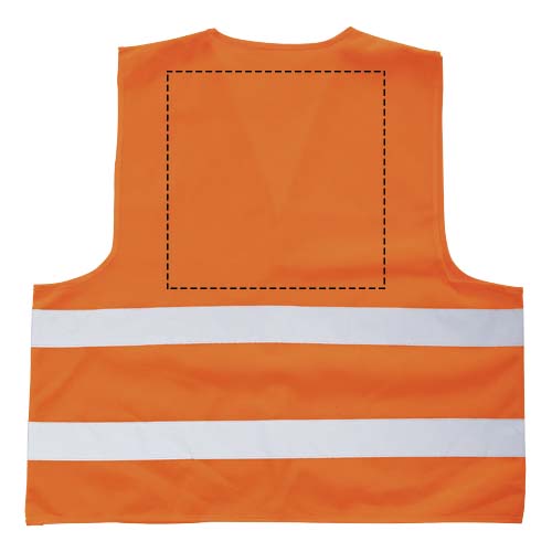 Korkean näkyvyyden varoitusliivi, luokka 2, sopii 165–180 cm pitkille henkilöille. Suuri painatusalue liivin etu- ja takapuolella. Heijastinvaatteet ammattikäyttöön. Fluoresoiva tausta ja heijastava teippi. Standardit EN ISO 20471:2013+A1:2016. Näiden vaatteiden CE-merkintä osoittaa, että ne täyttävät EU-asetuksen 2016/425/EU vaatimukset luokan II henkilösuojaimille.