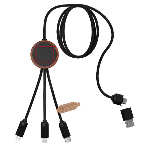 Logo trade mainostuote kuva: SCX.design C37 5-in-1 RPET-latauskaapeli pyöreällä puukotelolla, jossa valotehostettu logo